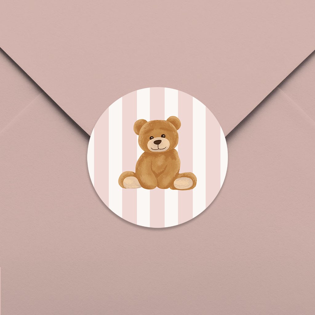 Sluitsticker met beertje en roze strepen. Super leuk voor op de envelop of ter decoratie.