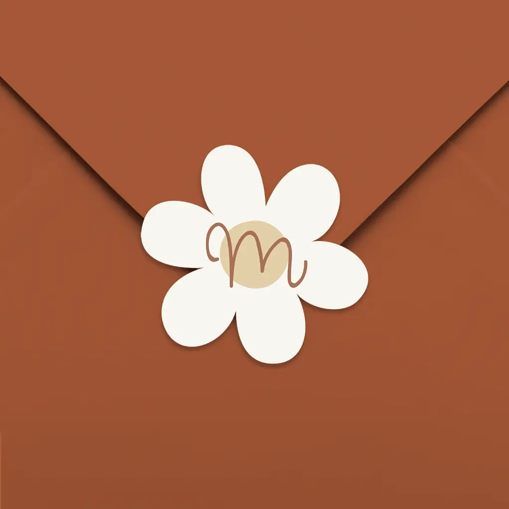 Deze sluitsticker heeft de vorm van een bloem. Centraal op de sluitsticker kan de initiaal van jullie kleintje gezet worden.