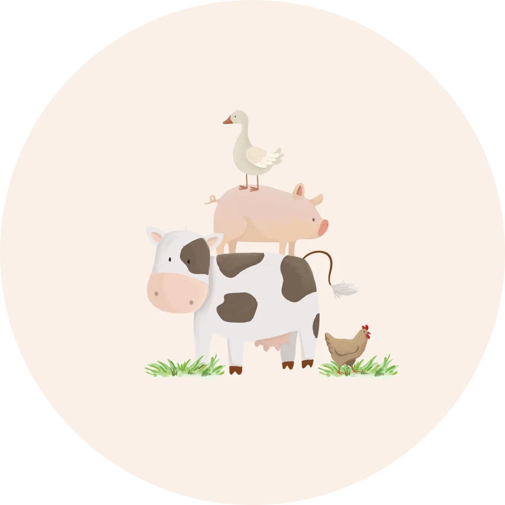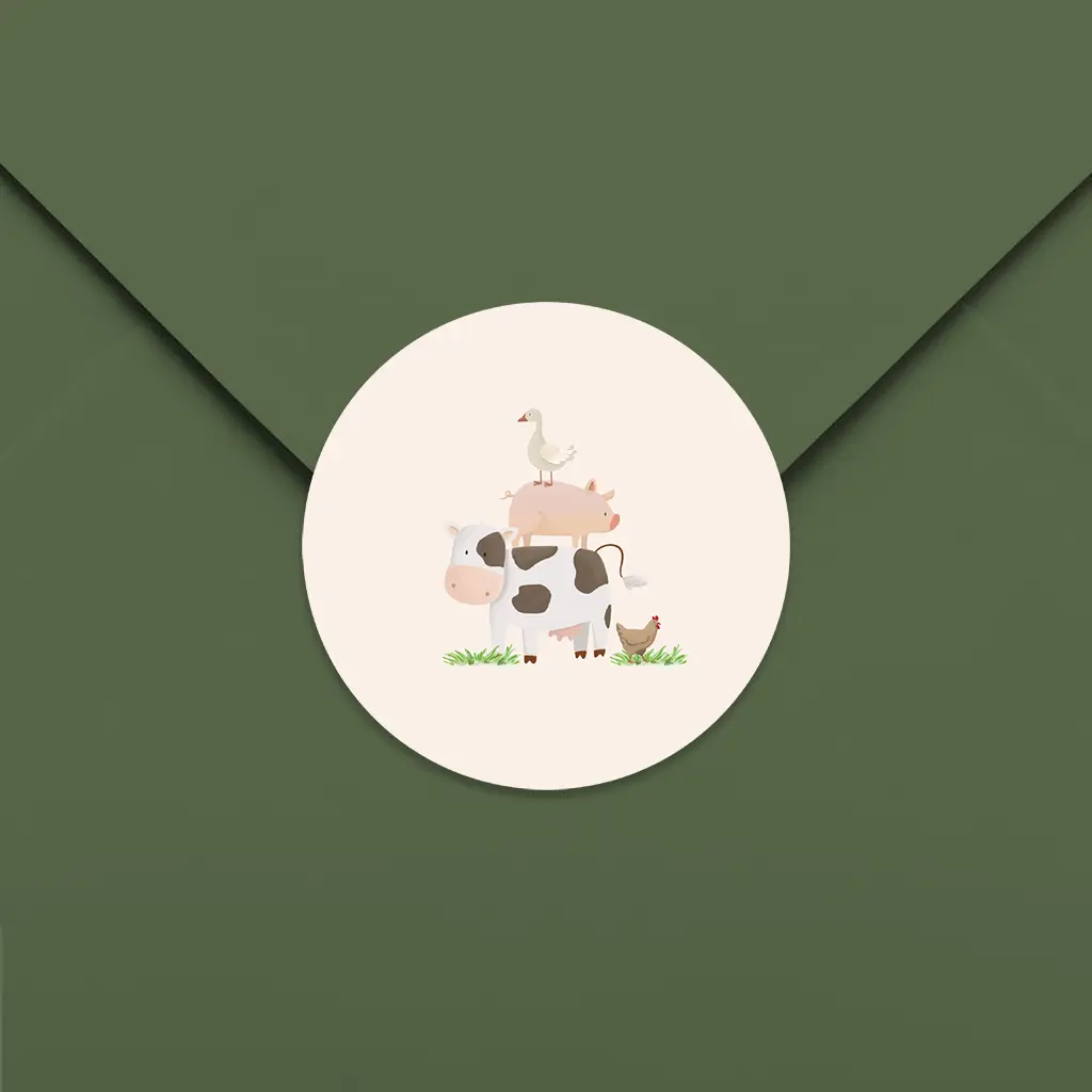 Een vrolijke sluitsticker voor op de envelop. De sticker heeft een lichte achtergrond met daarop verschillende vrolijke boerderijdieren. Pas het ontwerp naar wens aan in onze online editor.