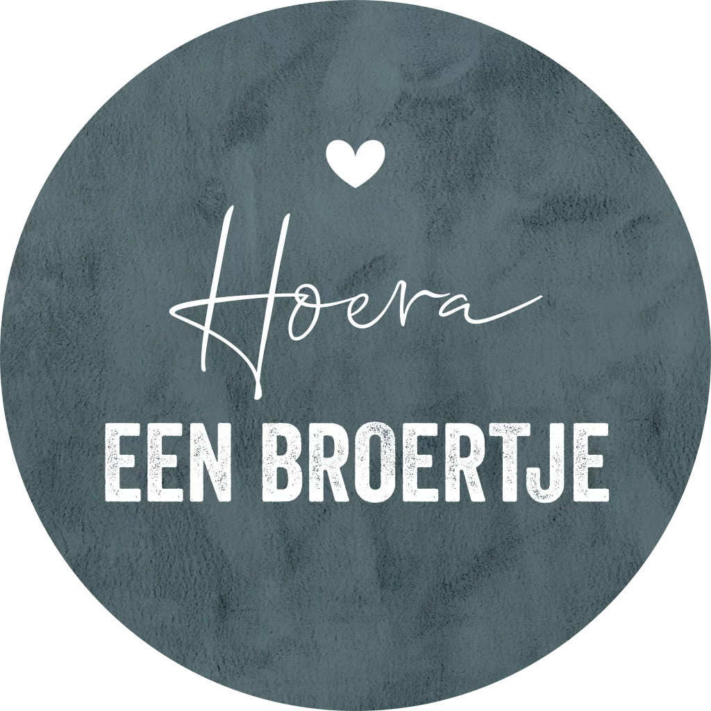 Hoera een broertje! Deze sluitsticker heeft een mooie velvet-look achtergrond met klein wit hartje. Pas in onze online editor de naam aan en de sticker is perfect voor jouw envelop of doopsuiker. De sluitstickers hebben een diameter van 35 mm en worden geleverd op vellen van 25 stuks.