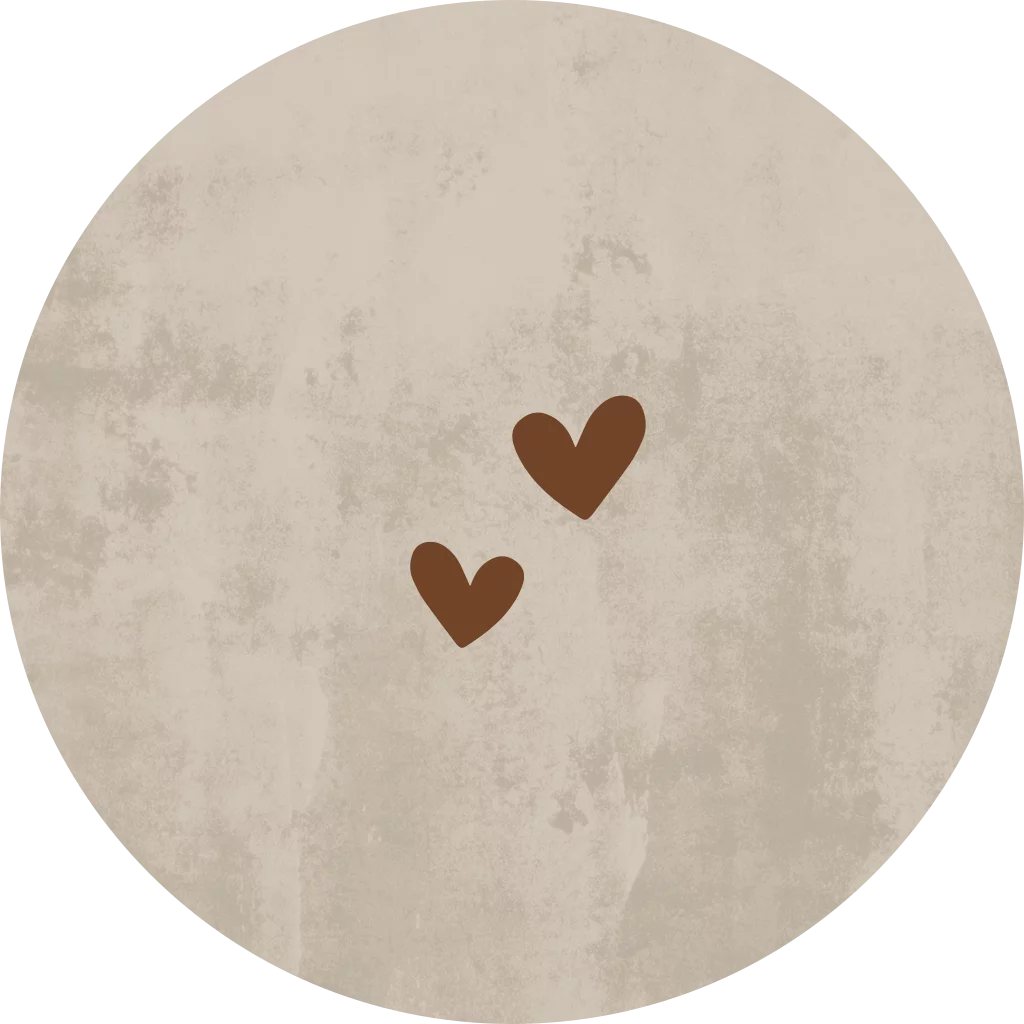 Een stoere sluitsticker met bruine velvet-look achtergrond. Daarop zie je twee bruine hartjes. Pas de sticker naar wens aan in onze online editor.