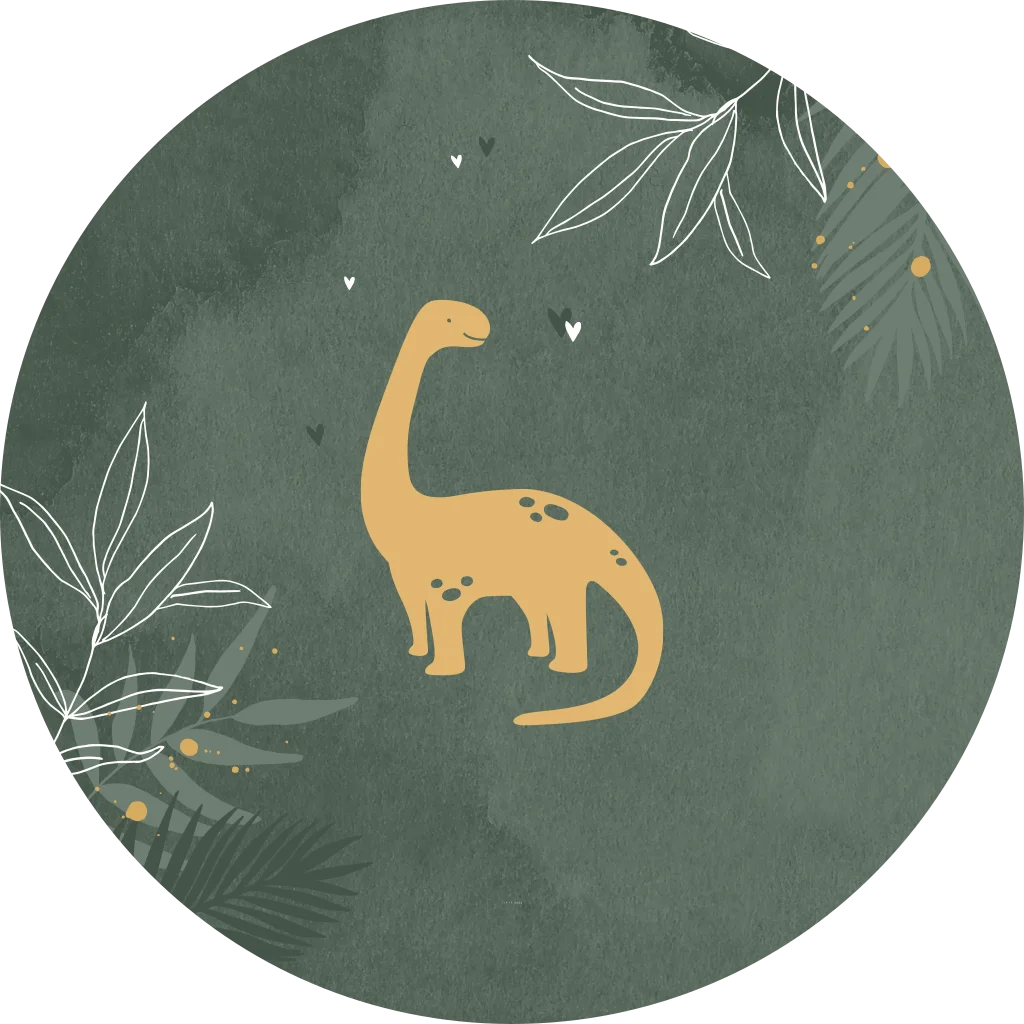 Stoere sluitsticker in groene velvet look met een dino in het midden.