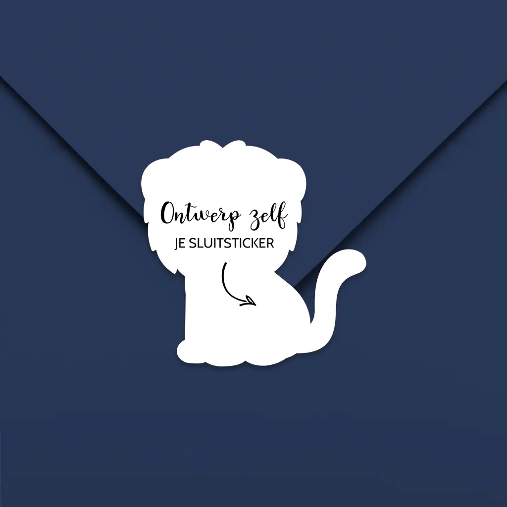 Personaliseerbare sluitsticker in de vorm van een leeuw - per 20 stuks