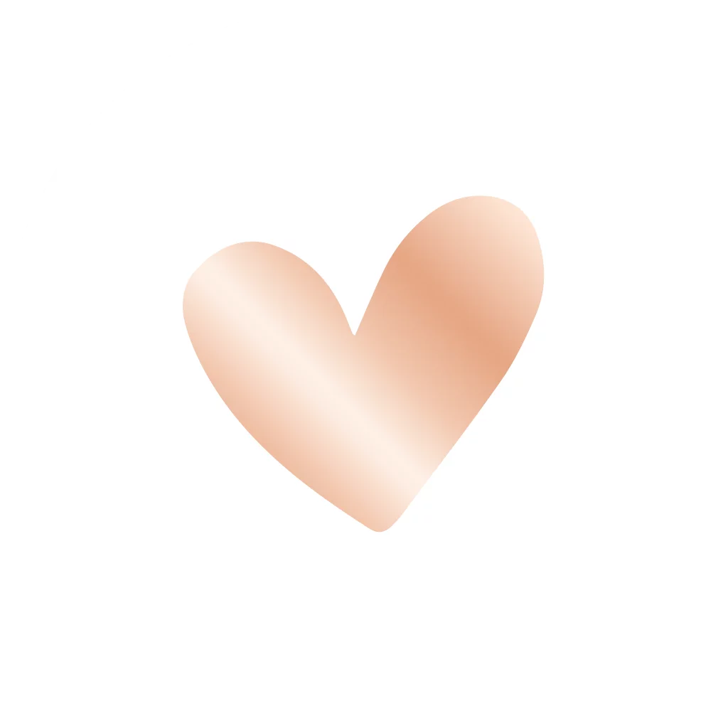 Een stijlvolle sluitsticker met roségoudfolie hartje. Deze sticker is volledig te personaliseren in onze online editor. Pas naar wens de foliedruk kleur aan zodat deze helemaal naar wens is.