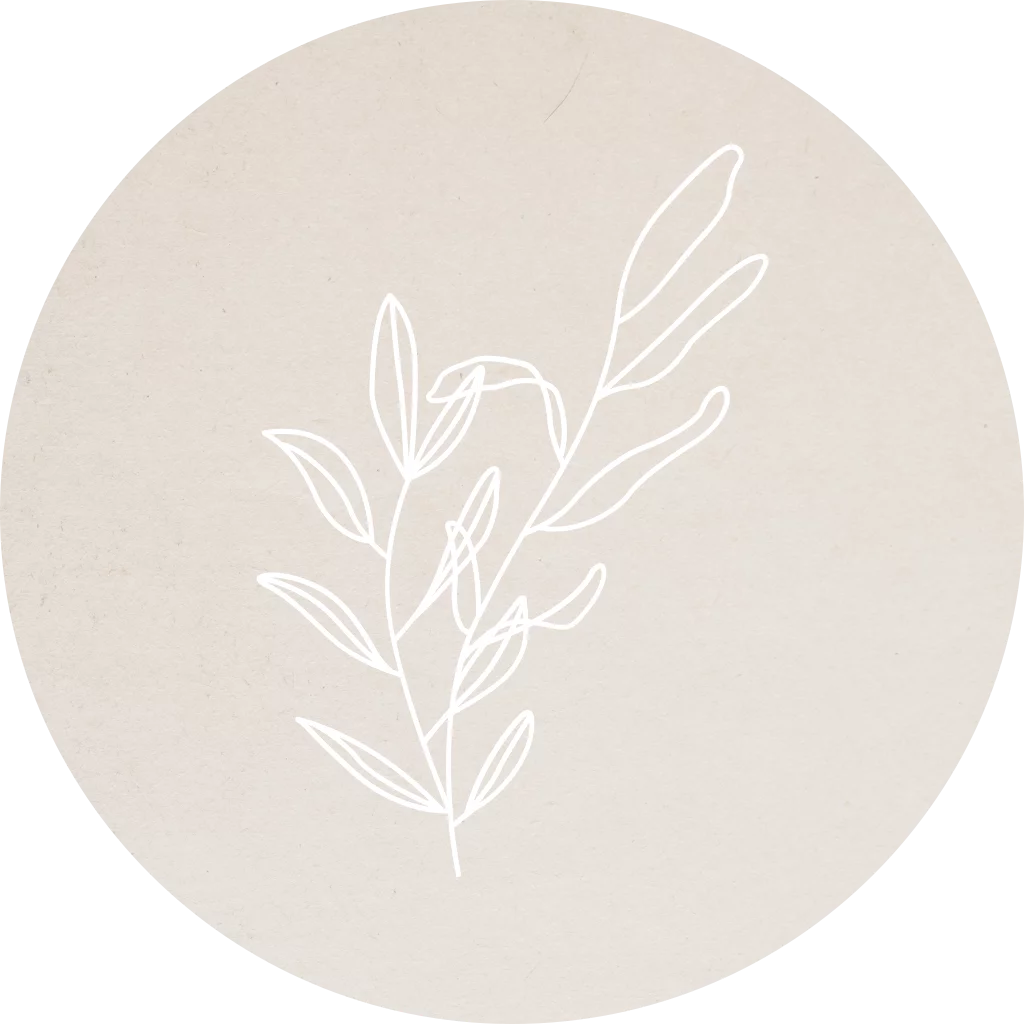 Een stijlvolle sluitsticker met lijntekening van een takje. De achtergrond heeft een structuur en een zandkleur. De sluitstickers hebben een diameter van 35 mm en worden geleverd op vellen van 25 stuks.