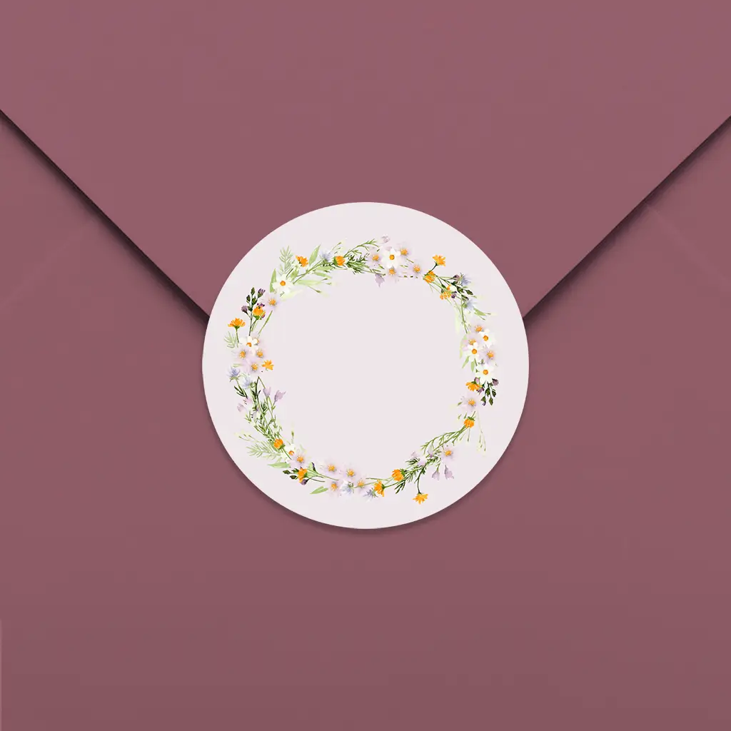 Sluitsticker lila met lieve bloemenkrans - per 25 stuks