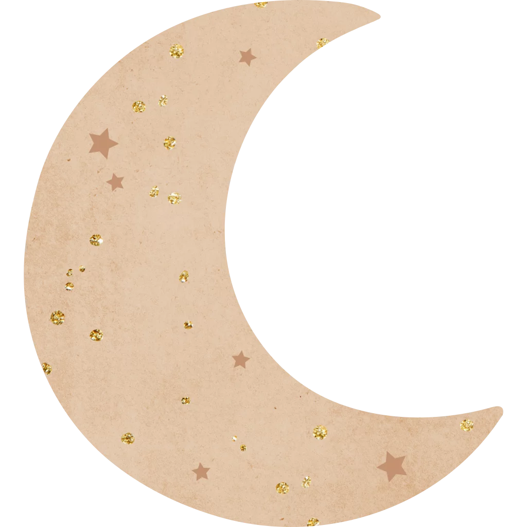 Deze sluitsticker heeft de vorm van een maan. De kleine sterretjes en goudkleurige spetters geven deze sluitsticker een feestelijk effect.