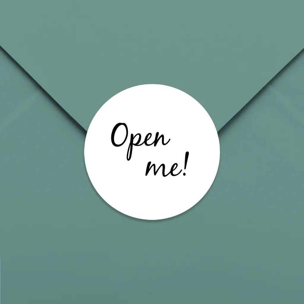 Sluitsticker 'Open me!' - per 25 stuks
