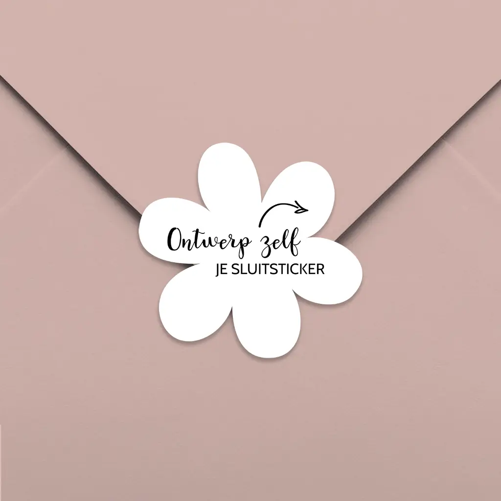 Deze sluitsticker heeft de vorm van een bloemetje. Het design is naar eigen wens aan te passen.