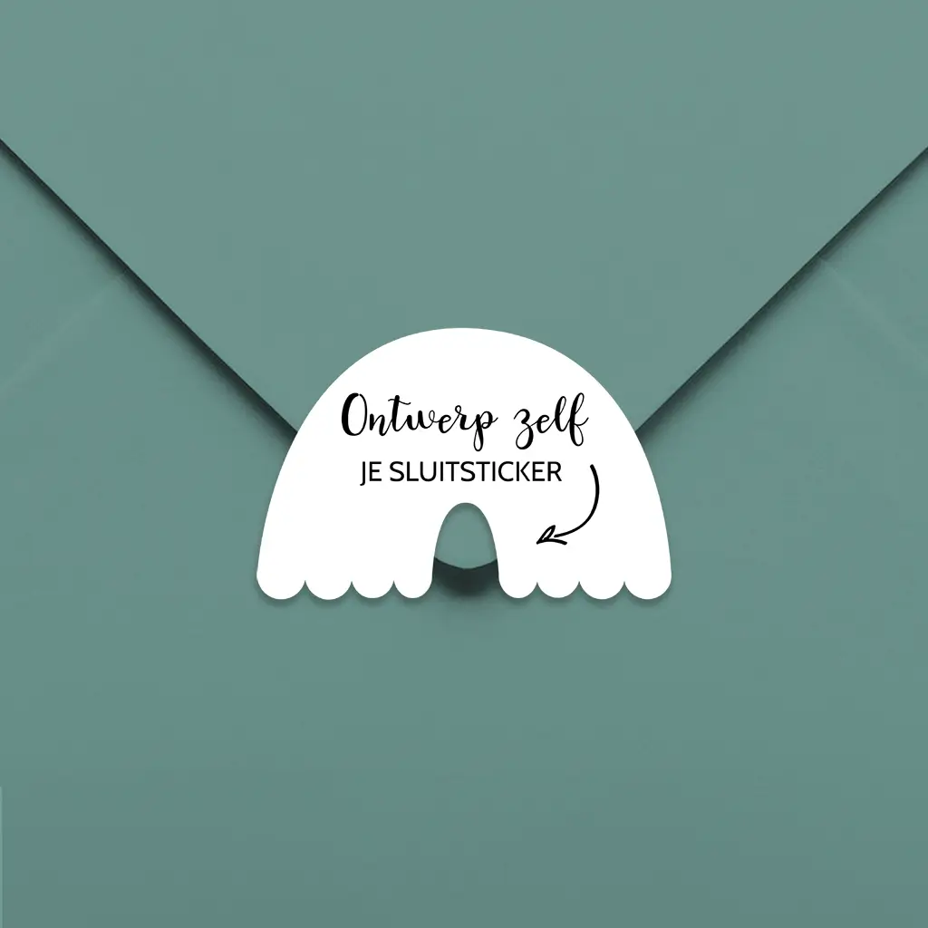 Deze sluitsticker heeft de vorm van een regenboog. Het design is naar eigen wens aan te passen.