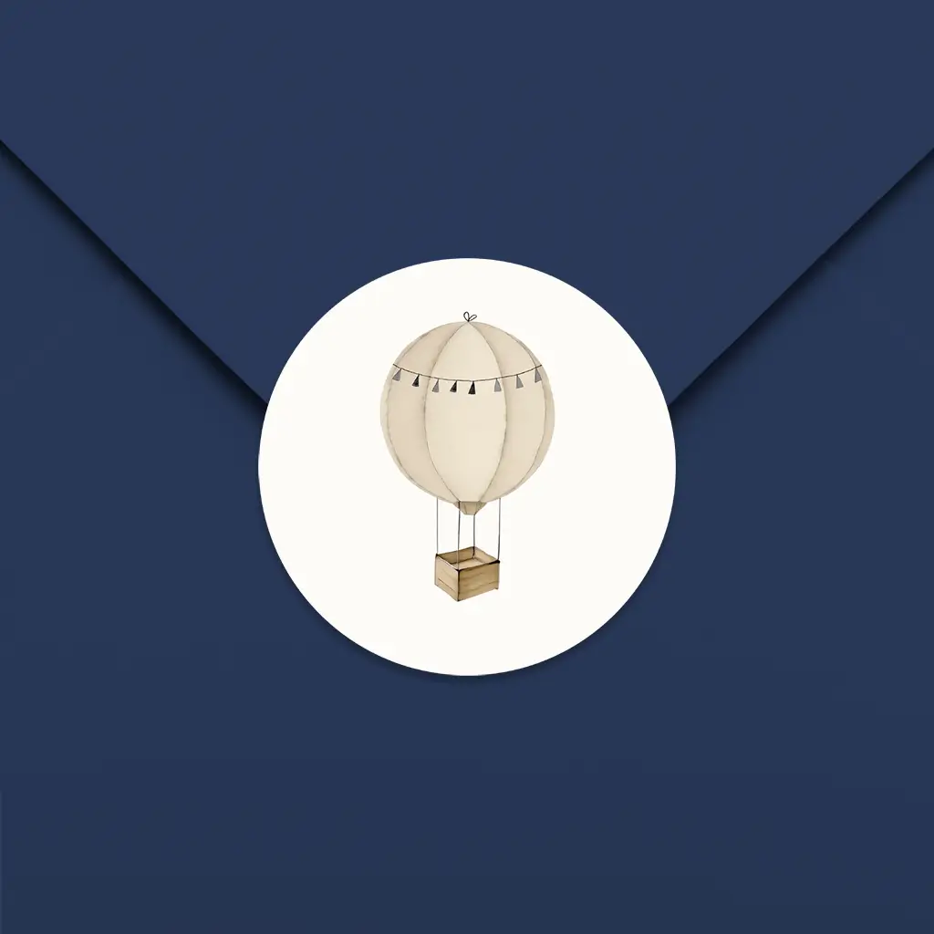 Een stijlvolle sluitsticker passend bij het geboortekaartje van jouw kindje. De sticker heeft een prachtige illustratie van een luchtballon. Pas het ontwerp naar wens zelf aan.