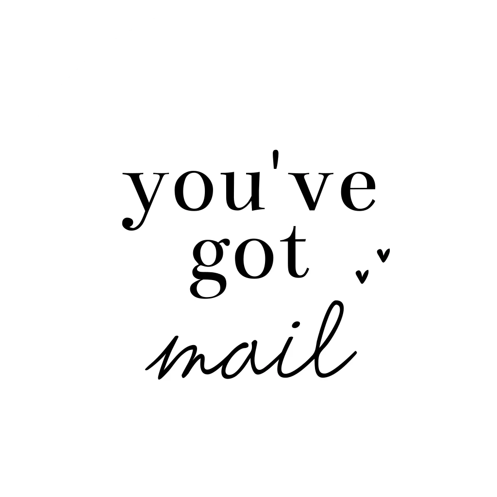 Een sticker met de originele tekst 'You've Got Mail' en hartes. Deze sticker in zwart-wit kun je gebruiken voor geboortekaartjes, uitnodigingen en andere post. Maak je envelop helemaal af met deze stijlvolle sluitzegel met tekst!