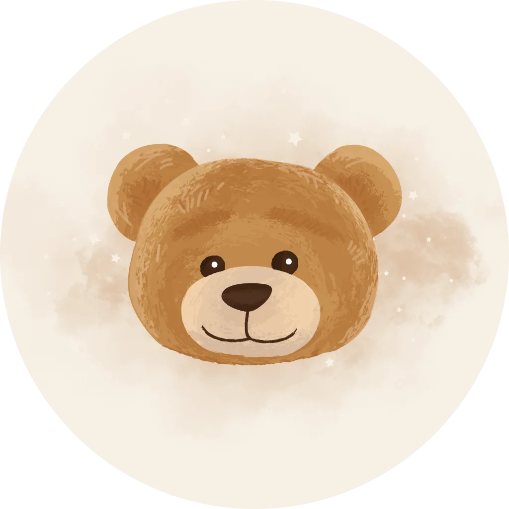 Een lieve sluitsticker met schattig teddybeertje. De achtergrond heeft een zachte beige kleur met daarop watercolour. In onze online editor kan je de sticker naar wens aanpassen.