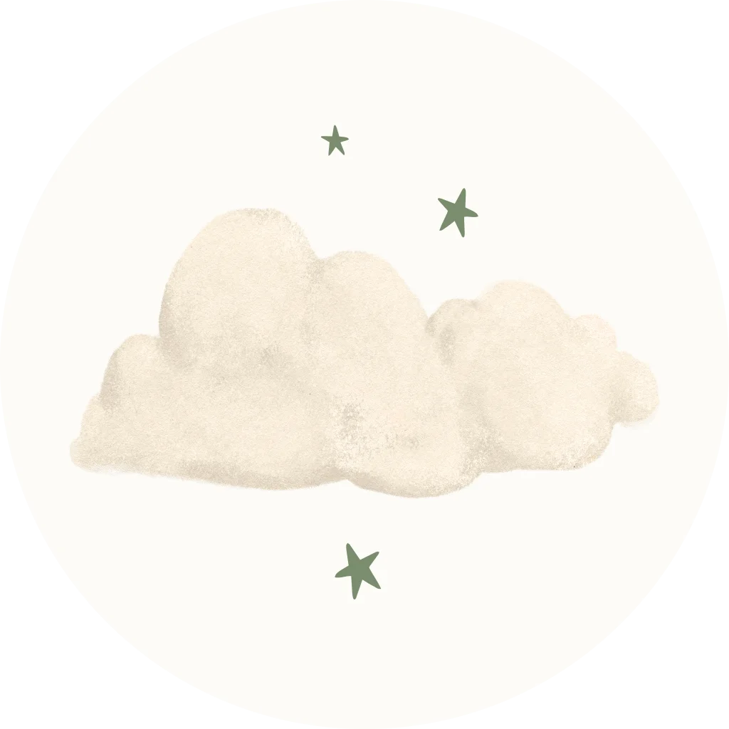 Een lieve sluitsticker passend bij het geboortekaartje. De sticker heeft een wolkje en groene sterretjes. Pas het ontwerp naar wens zelf aan.