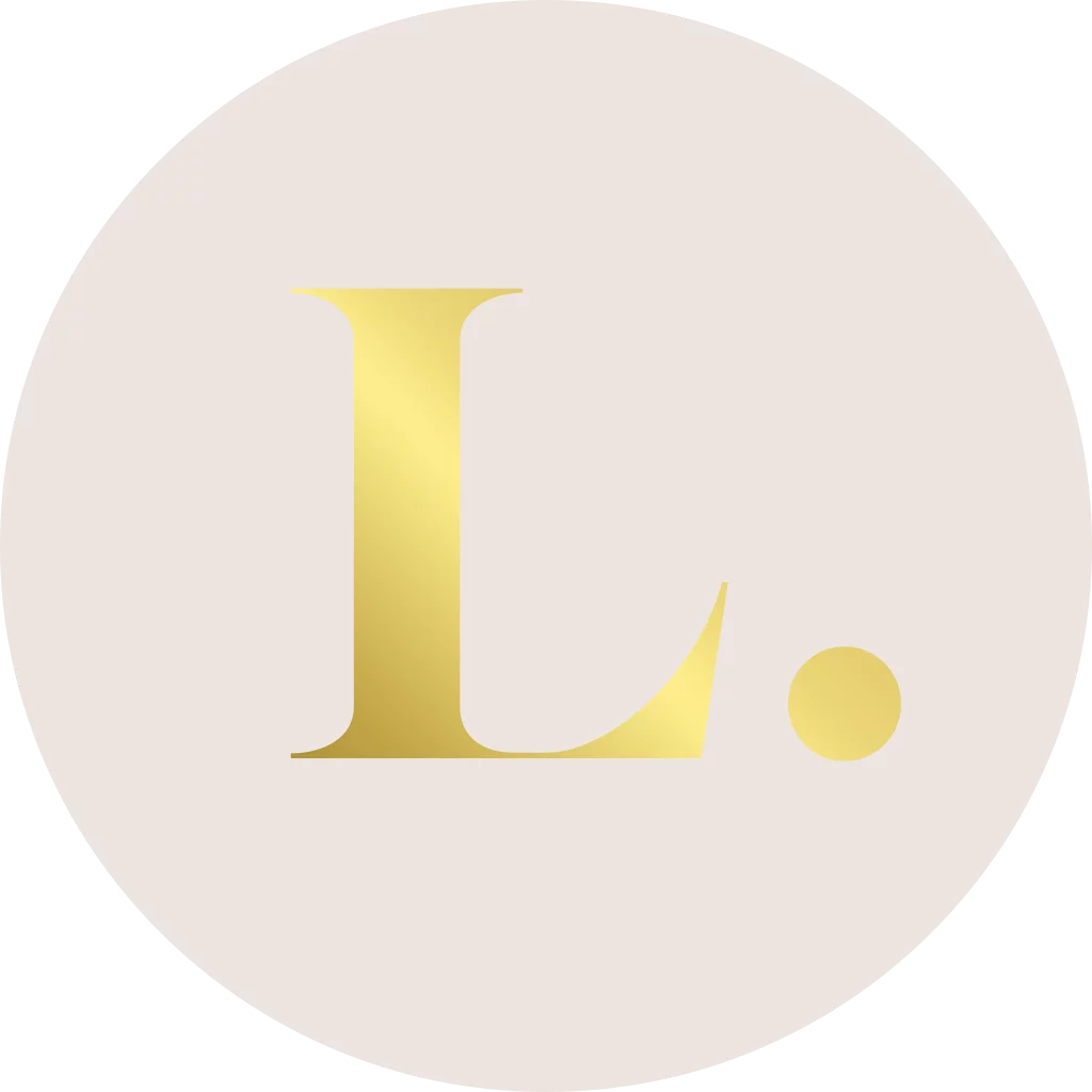 Minimalistische sluitsticker in een rustige zandkleur met de tekst in goudfolie. Het initiaal kun je zelf eenvoudig aanpassen in de online editor.