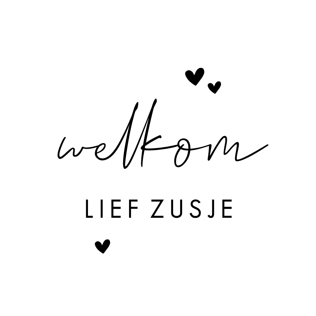 Welkom lief zusje! Deze sluitsticker staat ontzettend leuk op een envelop, doopsuiker en traktatie. De tekst en kleuren kun je eventueel zelf nog naar wens aanpassen. De sluitstickers hebben een diameter van 35 mm en worden geleverd op vellen van 25 stuks.