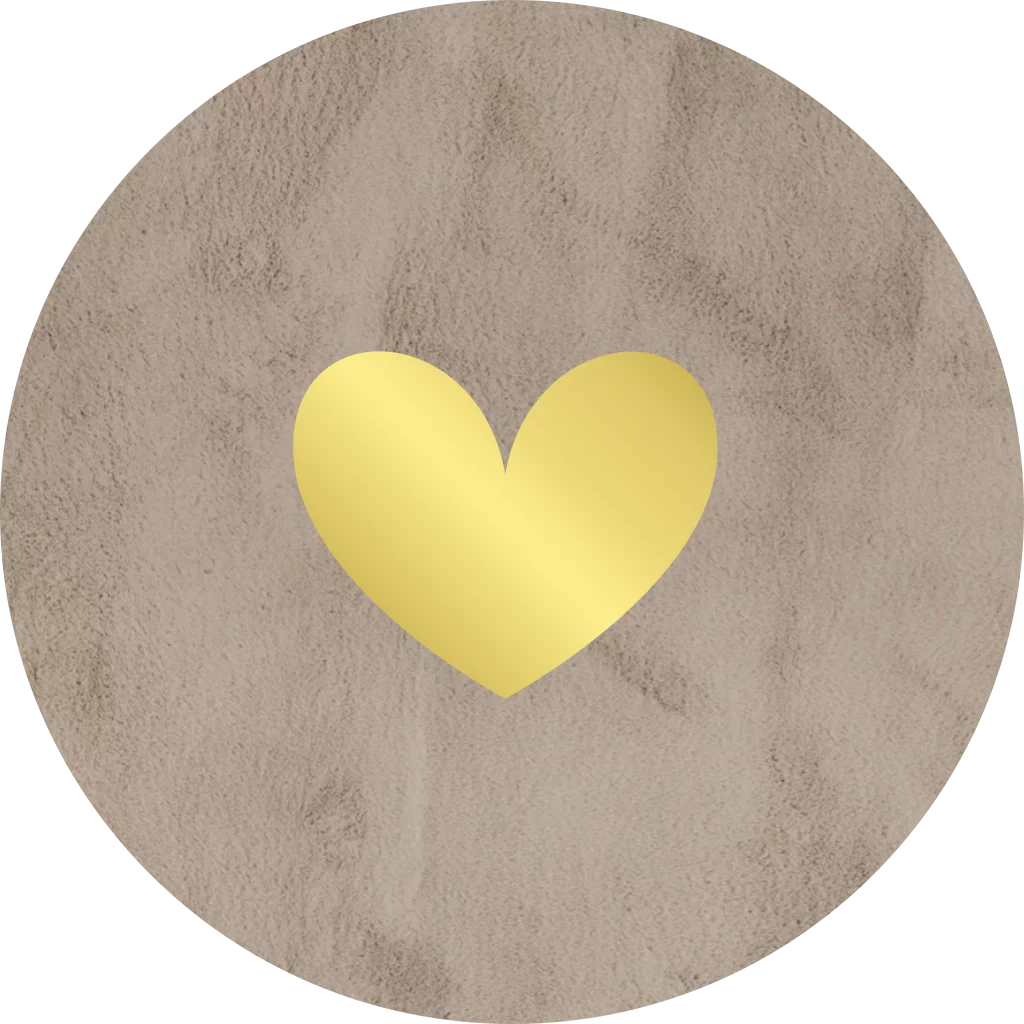 Stoere sluitsticker in beige velvet-look met in het midden een lief hartje van goudfoliedruk.