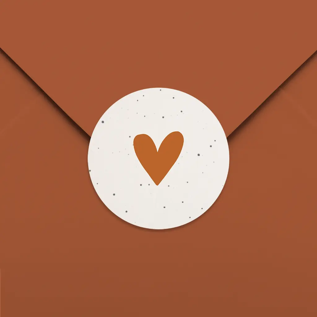 Sluit de envelopjes van het geboortekaartje met deze trendy bijpassende sluitzegels. Op een beige achtergrond staan kleine stipjes, in het midden een bruin hartje.