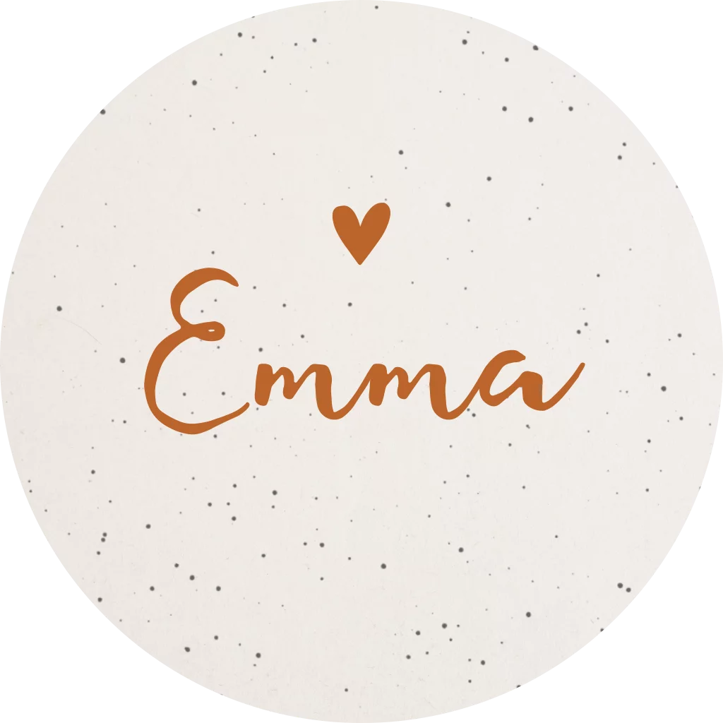 Minimalistische sluitsticker met een olijfgroene achtergrond. Plaats de naam of initialen van jouw kleintje op de sticker in onze online editor.