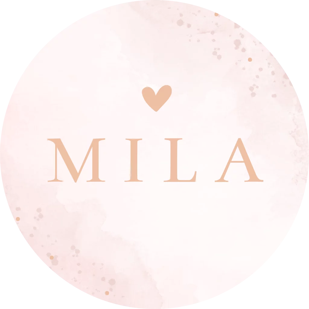 Lieve sluitsticker met roze watercolour en hartje. Plaats de naam of initialen van jouw kleintje op de sticker in onze online editor.