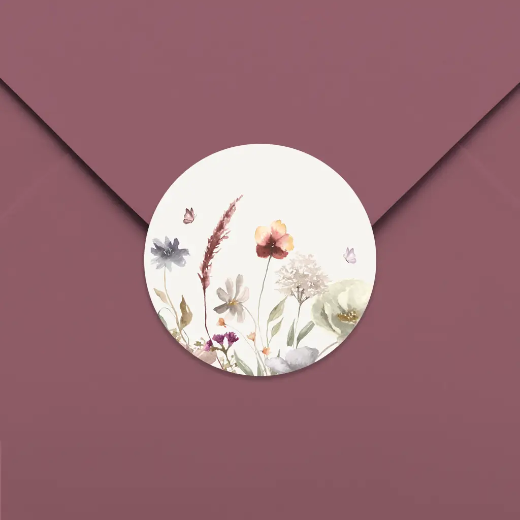 Sluitsticker met stijlvolle watercolour veldbloemen - per 25 stuks
