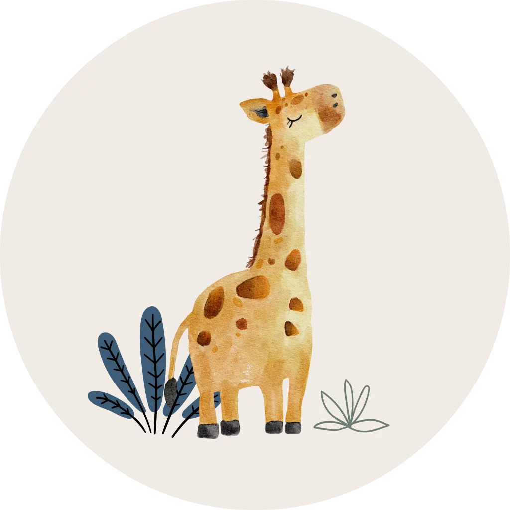 Wat een toffe sticker voor het geboortekaartje. Deze sticker past perfect bij het geboortekaartje van designer June & Berry. De sticker heeft een lieve en vrolijke illustratie van een girafje tussen de junglebladeren. Pas de sticker naar wens aan in onze online editor.