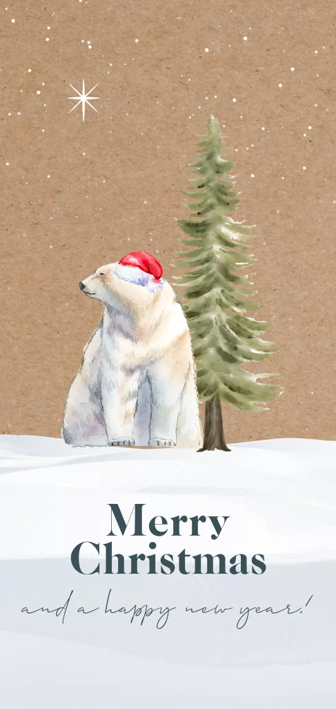Kraftlook kerstkaart met illustratie van ijsbeer en boom in de sneeuw