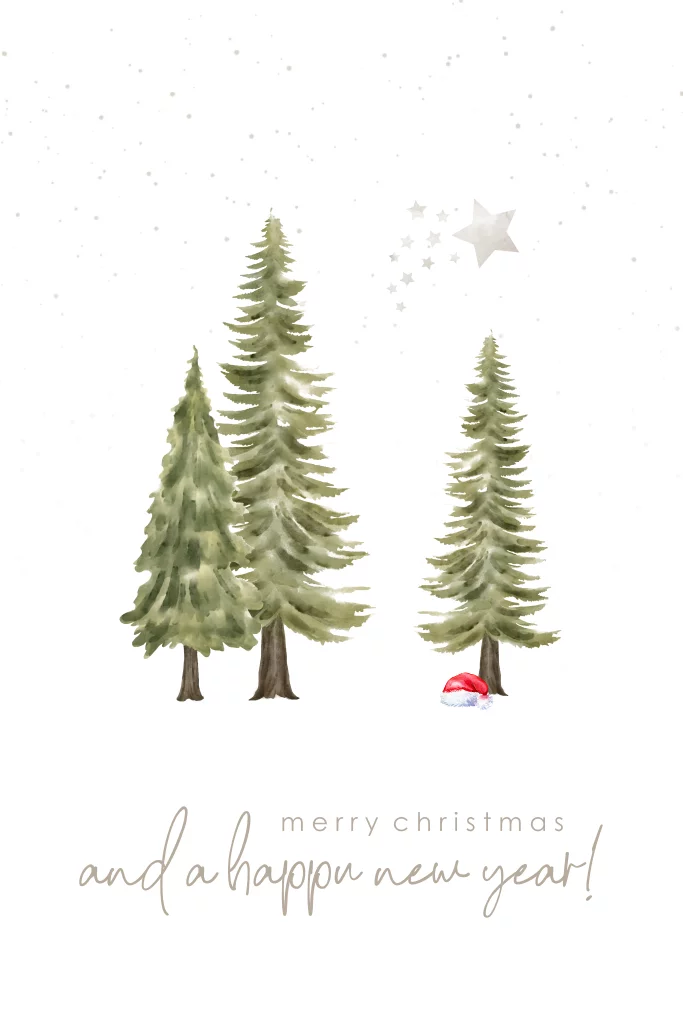 Een schattig kerstkaartje om te versturen naar jullie vrienden en familie. Het kaartje heeft mooie illustraties van bomen en sneeuw. Pas het kaartje naar wens aan in onze online editor.