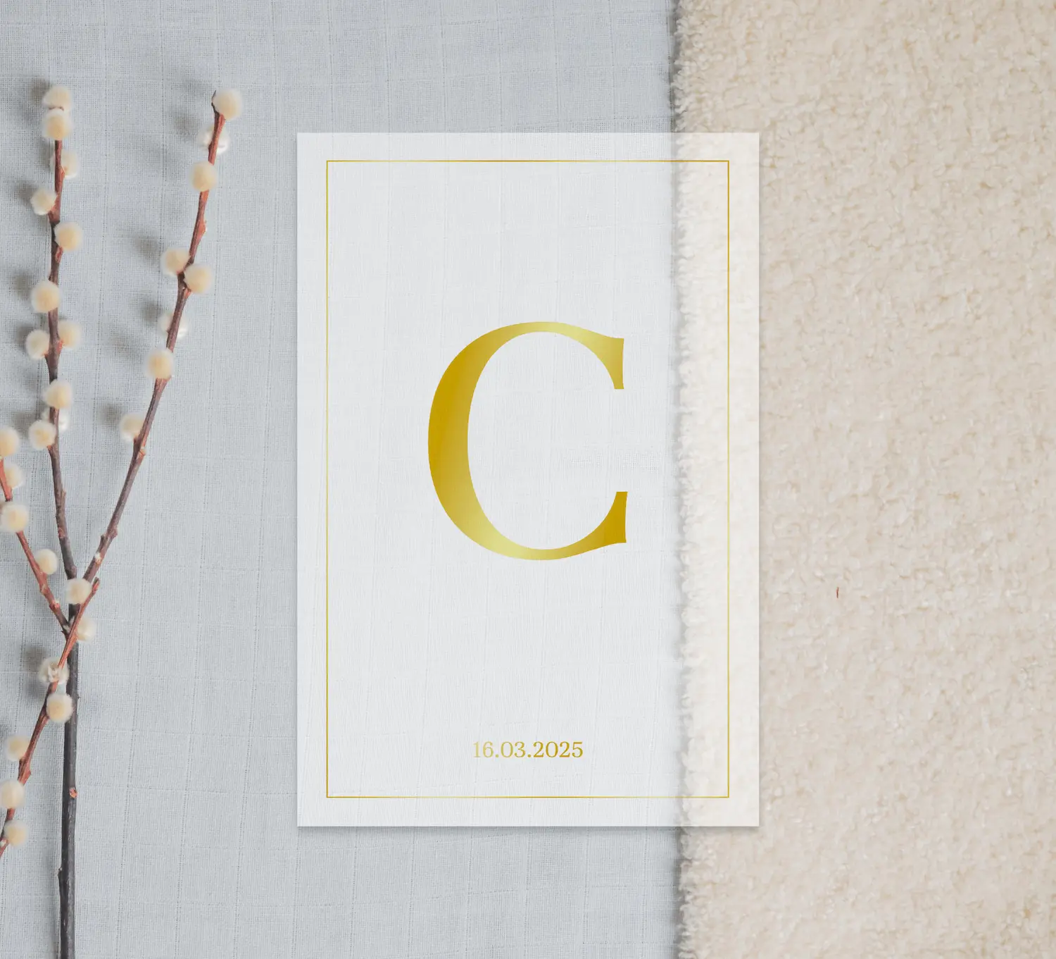 Voorblad kalkpapier kaartje met goudfolie initiaal
