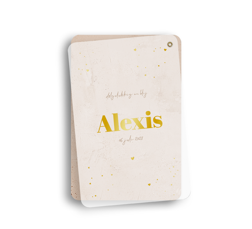 Geboortekaartje kalkpapier met goudfolie hartjes