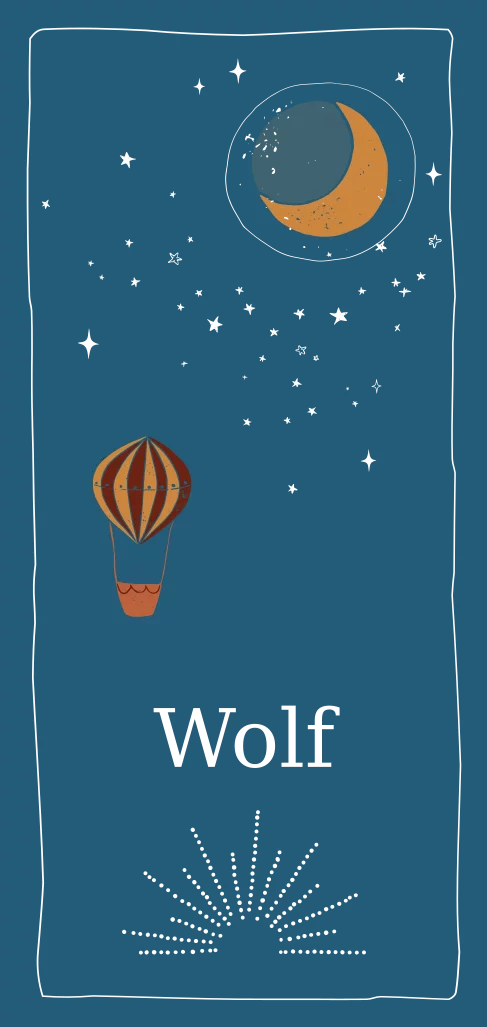 Dromerige geboortekaartje met blauwe achtergrond. Het langwerpige kaartje heeft een sterrenhemel met halve maan. Daarnaast zie je een luchtballon. Pas het ontwerp naar wens aan in onze online editor.Totaalprijs: 0 |