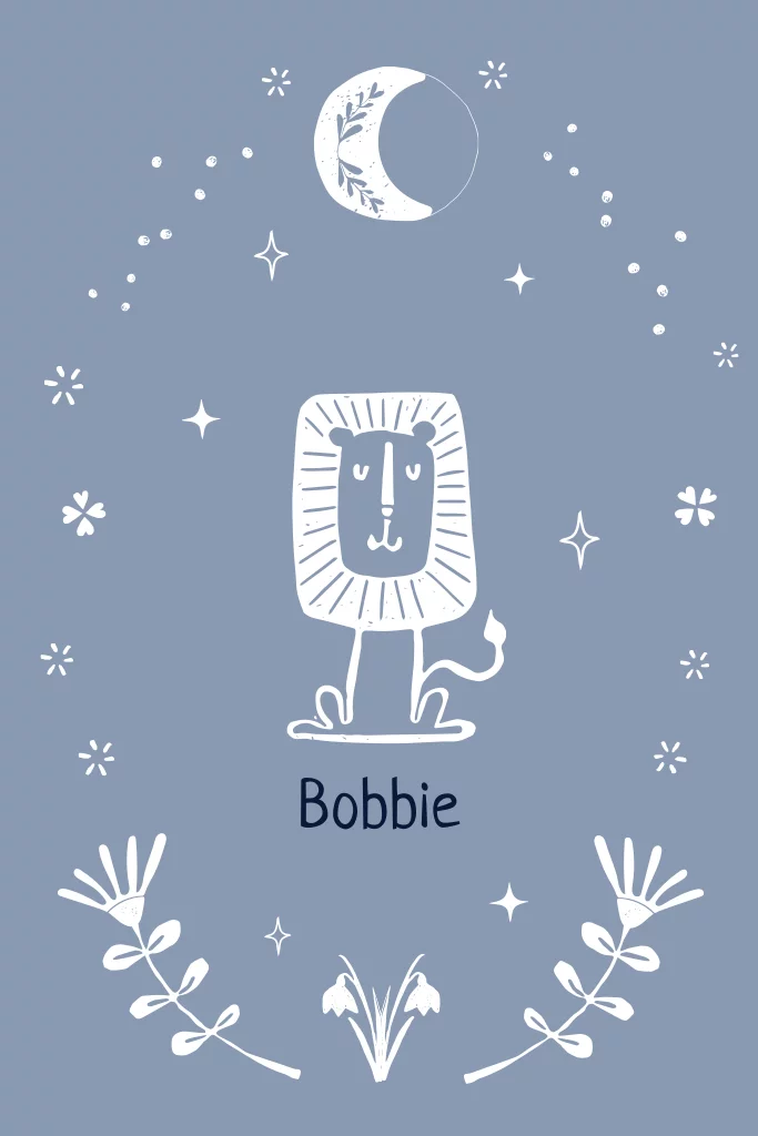 Blauw folk stijl geboortekaartjes met leeuwtje maan, sterren en bloemen. Pas het ontwerp naar wens aan in onze online editor.