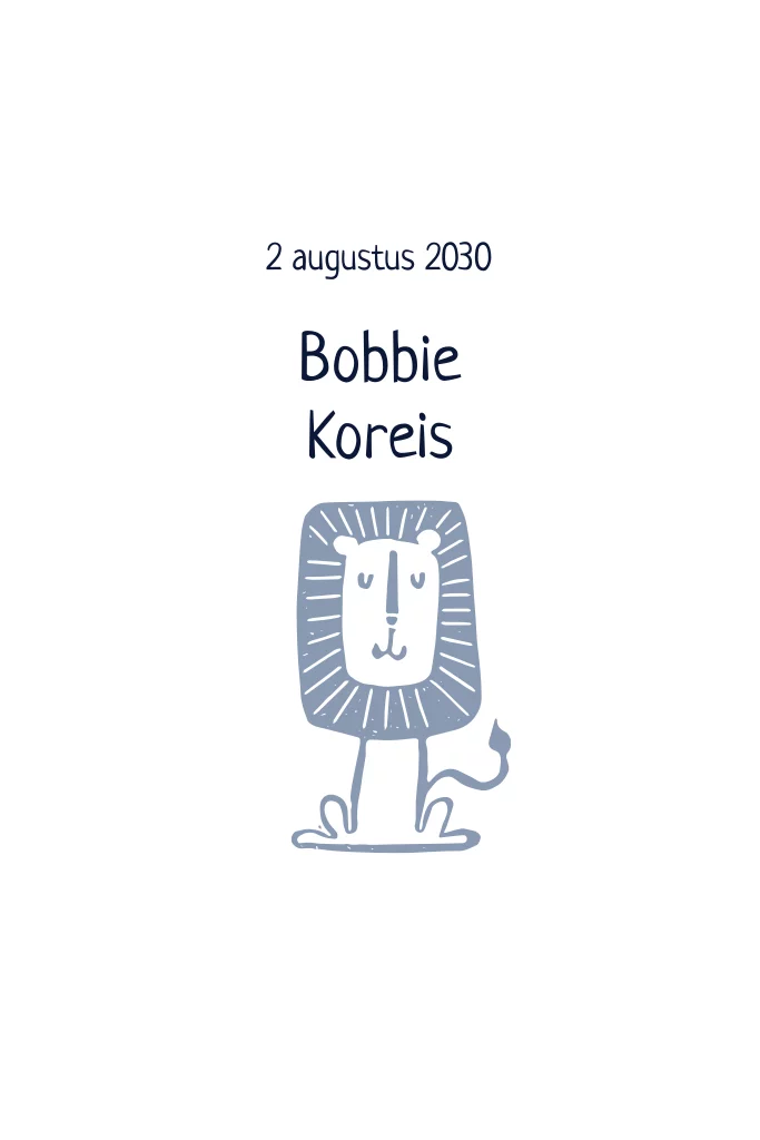 Folklore geboortekaartje blauw met leeuw en sterrenbeeld