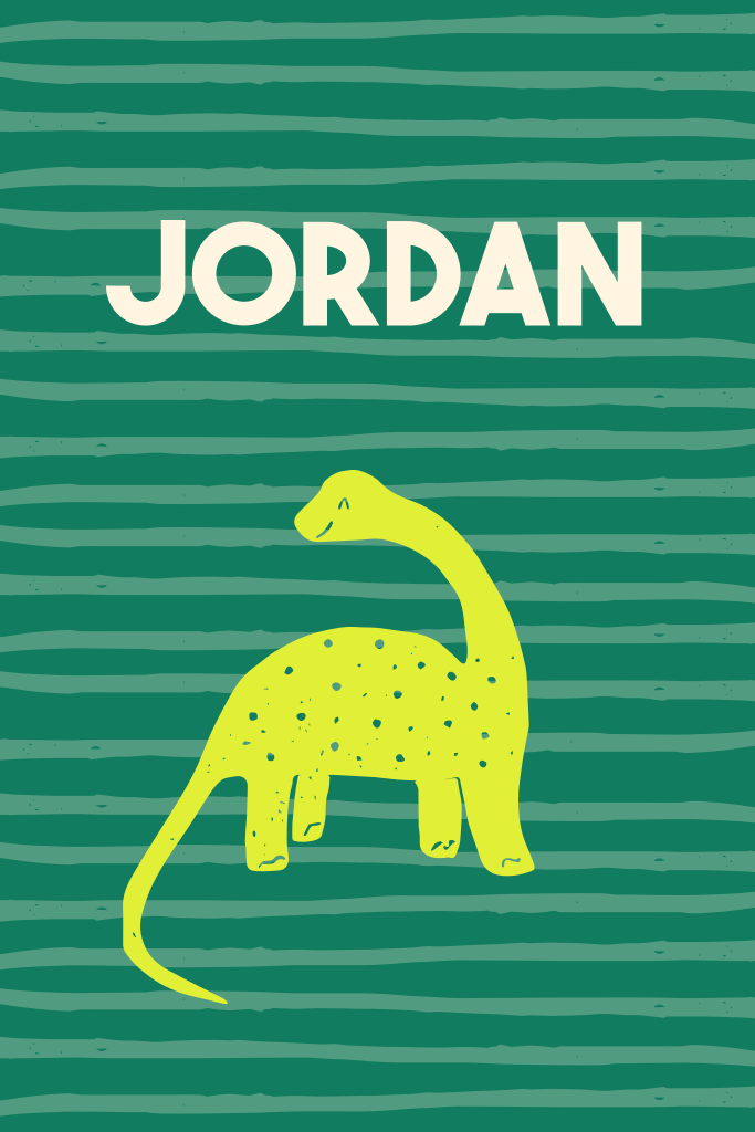 Vrolijk geboortekaartje met dinosaurus en streepjes