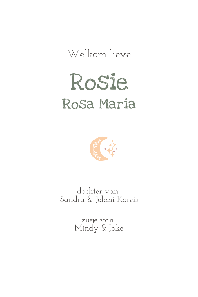 Hip bohemian style geboortekaartje in mooie zachte kleuren. Op het kaartje zie je een maan, sterren en dromenvanger met regenboogje. In onze online editor kan je dit kaartje gemakkelijk personaliseren.