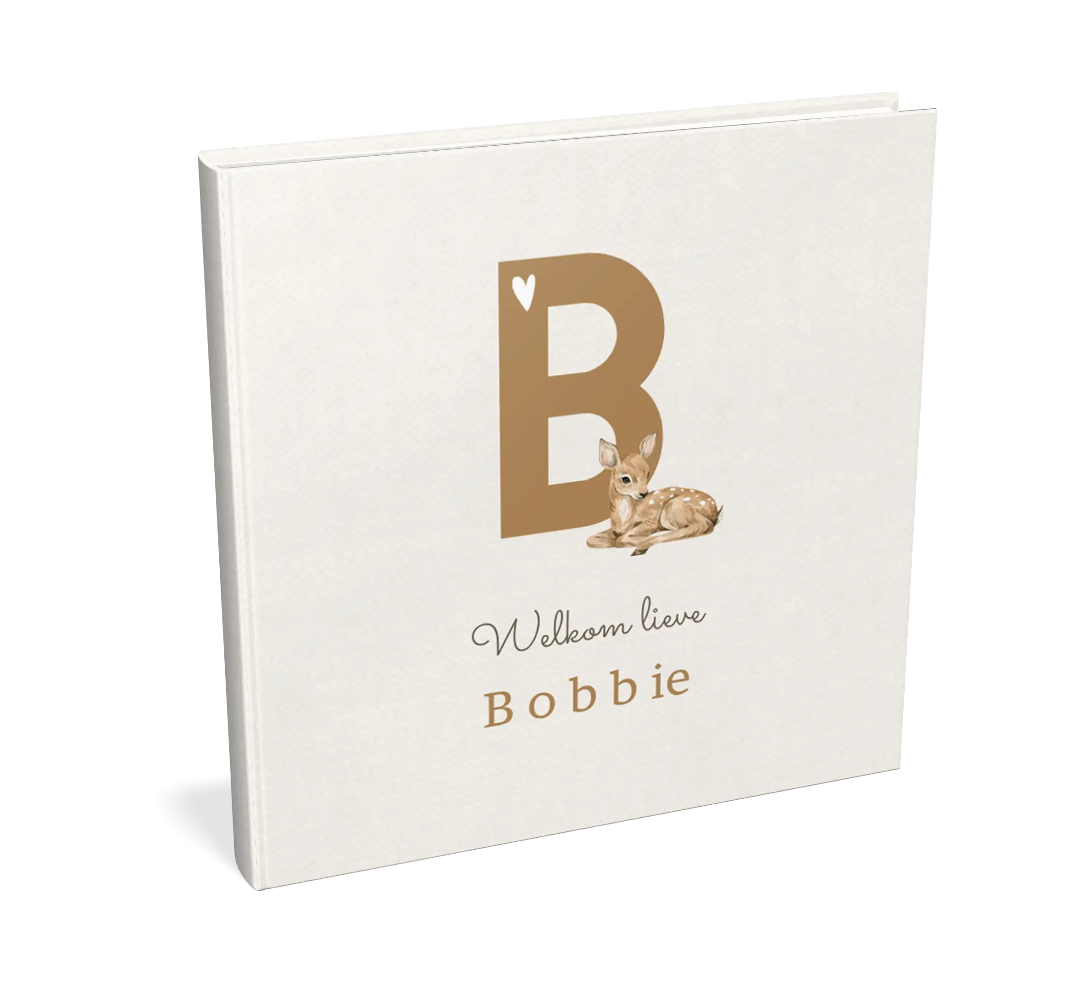 Dit kraambezoekboek heeft een herfst thema met een illustratie van een lief hertje en een egeltje. Dit boek is helemaal naar wens aan te passen in onze online editor.