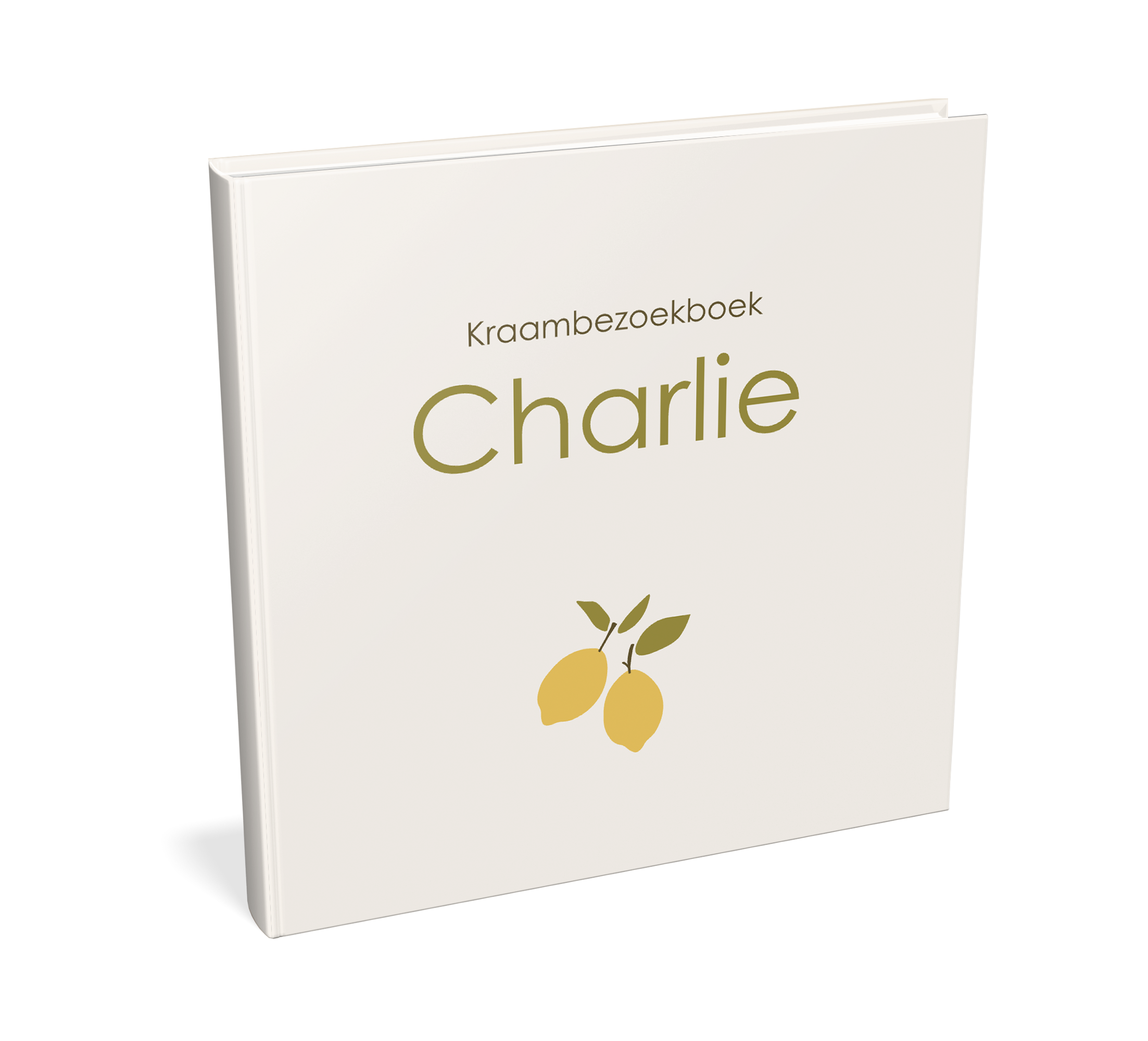 Dit is een speels kraambezoekboek. Het boek heeft een lichte achtergrond met de illustratie van twee citroenen. Zowel de voor- als achterkant van het boek kan aangepast worden in onze online editor.