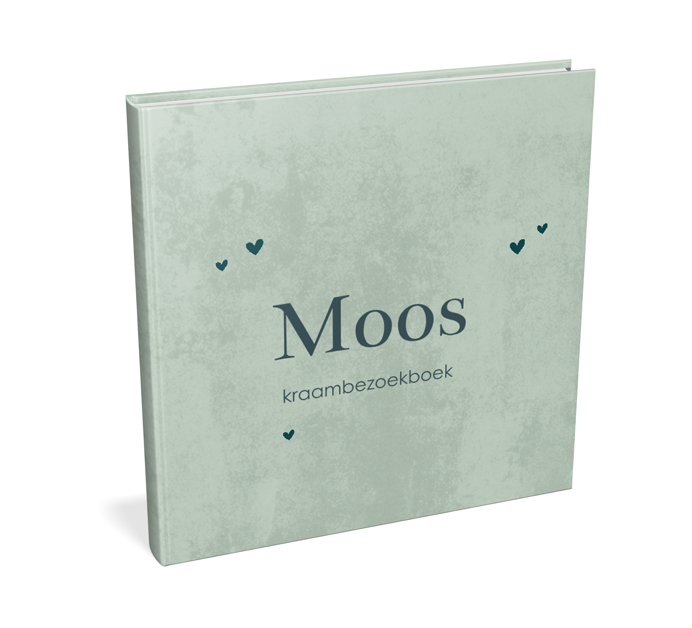 Dit is een prachtig kraambezoekboek. Het boek heeft een groene velvet-look achtergrond. De donkergroene hartjes geven dit boek een lief effect. De voor- en achterkant van dit boek kunnen aangepast worden in onze online editor.