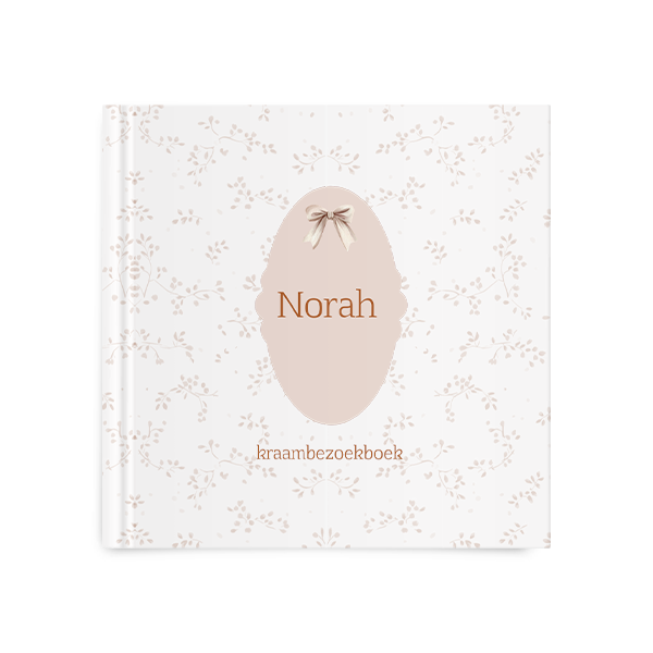 In dit kraambezoekboek kan alle kraamvisite een lieve boodschap achterlaten voor jouw kleintje. Dit boek is helemaal in thema met het bijpassende geboortekaartje, door het lichtroze kader, het beige strikje en de mooie, bloemige achtergrond. Bewerk het ontwerp eenvoudig in de editor, door bijvoorbeeld de kleuren of tekst aan te passen.