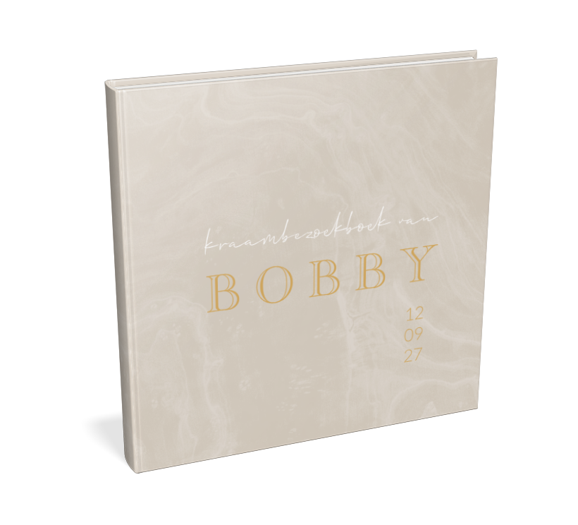 Mooi kraambezoekboek in neutrale kleuren om de herinneringen aan de kraamtijd voor jullie kindje te bewaren! De naam staat in stoere goudkleurige letters voorop, de achtergrond is in beige marmerlook.