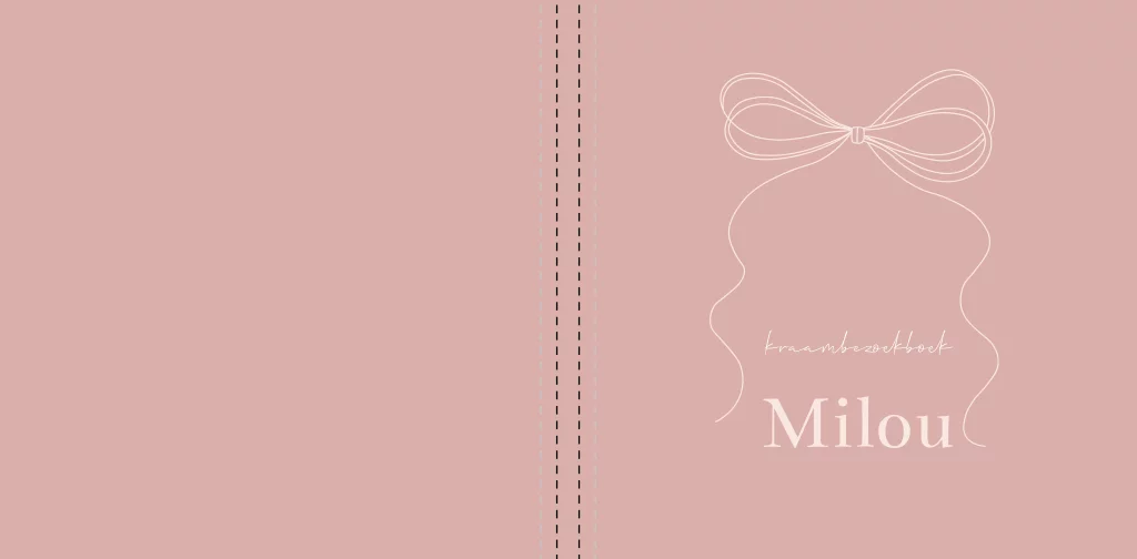 Een lief kraambezoekboek passend bij het geboortekaartje. De kaft heeft een roze achtergrond met daarop een lijntekening van een strikje. Pas het ontwerp naar wens aan op onze online editor.