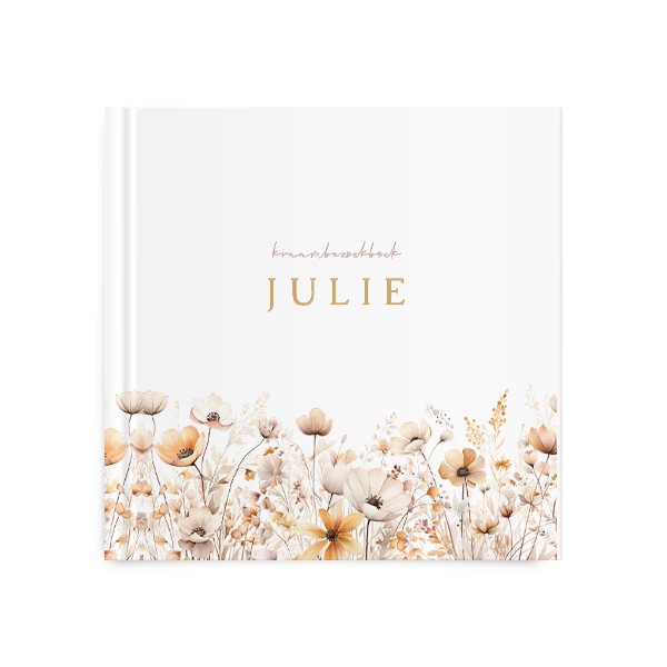 Een stijlvol kraambezoekboek voor jouw kindje. De kaft heeft een witte achtergrond met daarop prachtige illustraties van bloemen. Pas de kaft naar wens aan in onze online editor.