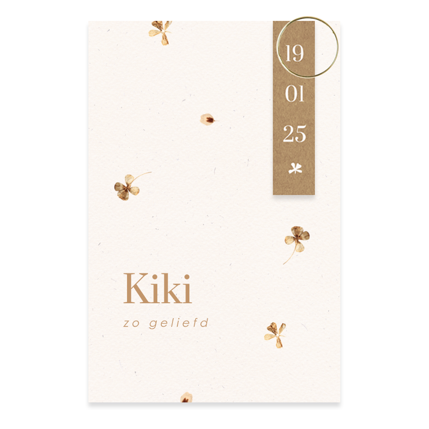 Dit is een prachtig geboortekaartje voor jullie dochter. Het kaartje heeft een lichte achtergrond met kleine droogbloemen. Bij het kaartje hoort een label waarop de geboortedatum van jullie kleintje of een leuk tekstje geplaatst kan worden. Het kaartje heeft een formaat van 11x17 cm. De bijpassende envelop die je kunt bestellen is 12 x 18 cm, zodat het kaartje er perfect in past.