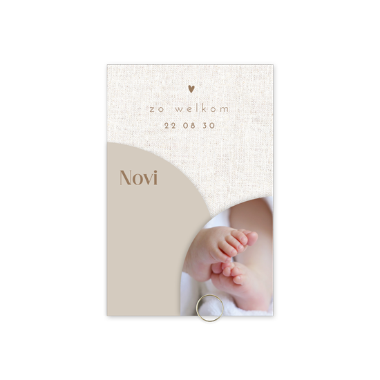 Origineel beige geboortekaartje 3-delig met foto