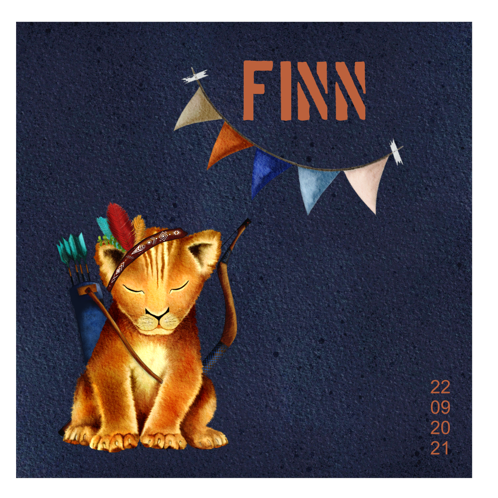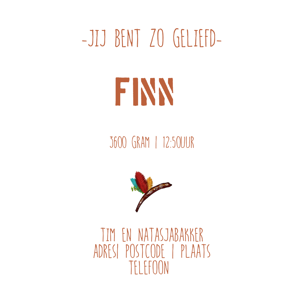 Stoere welp met aquarel geschilderd. De hippe veren tooi, pijl en boog en vlaggenlijn maken dit kaartje een feest voor het oog en de aankondiging van jouw zoon heel bijzonder!