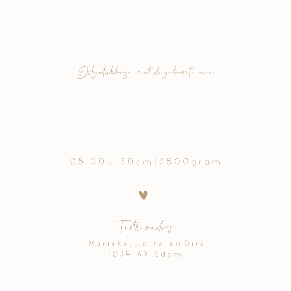 Een lief neutraal geboortekaartje voor jullie toekomstige kleintje. Het kaartje heeft een prachtige watercolour achtergrond. De aardetinten en goudfolie letters maken het kaartje helemaal af.