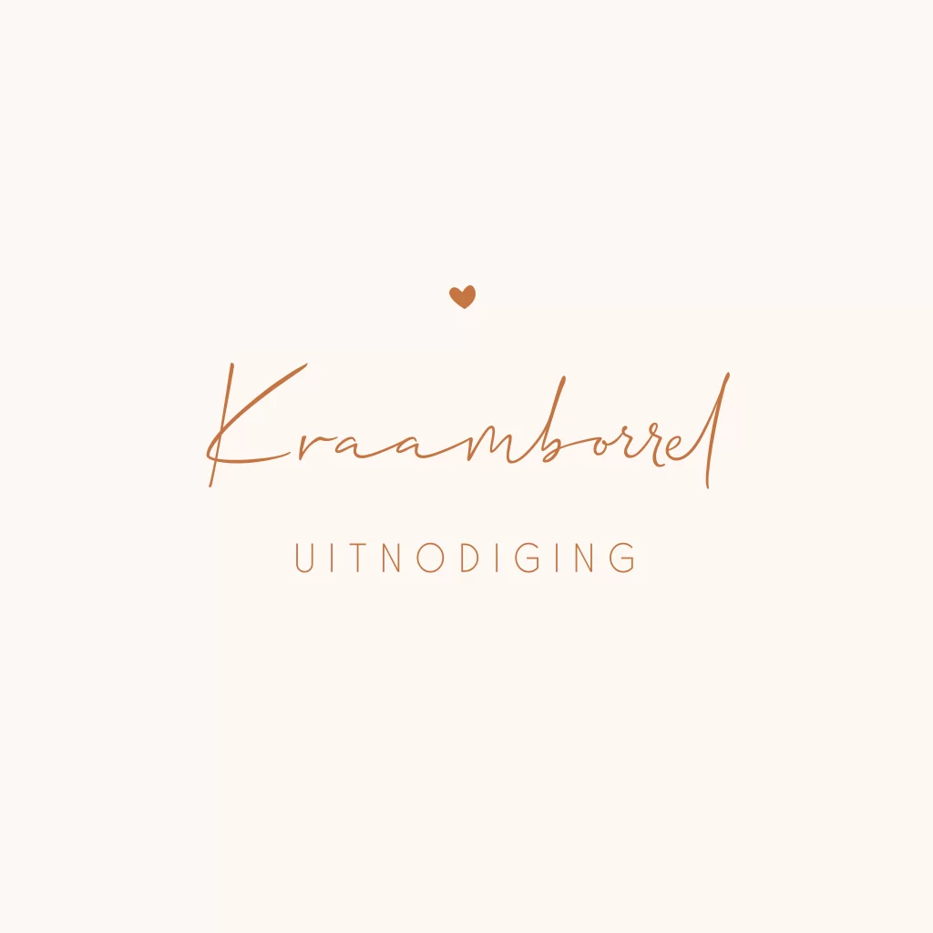 Een lieve kraamborrel uitnodiging in cremekleur. Het kaartje heeft een minimalistisch ontwerp met hartjes. Pas het ontwerp naar wens aan in onze online editor.
