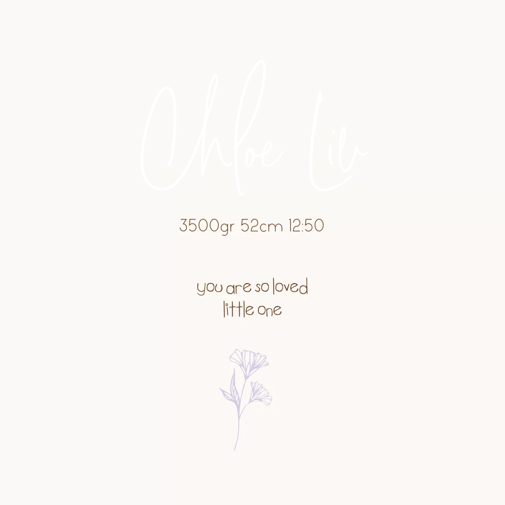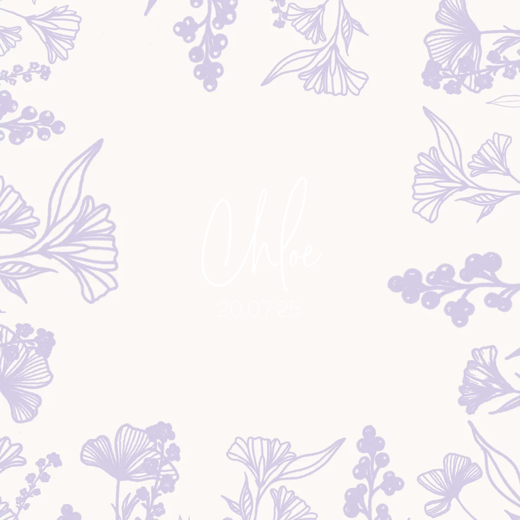 Dit is een mooi geboortekaartje voor jullie dochter. Centraal op het kaartje worden de naam en geboortedatum gedrukt in goudfolie. De lijntekeningen van paarse bloemen maken dit kaartje helemaal af! Pas het kaartje naar wens aan in onze online editor en bestel snel een proefdruk om dit kaartje in het echt te zien!