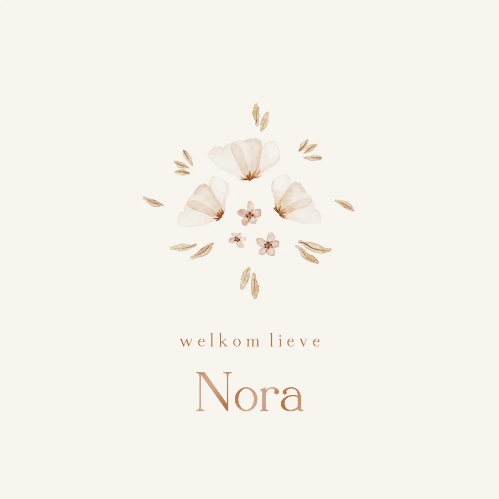 Minimalistisch vierkant geboortekaartje met zachte pasteltinten en handgeschilderde aquarel bloemetjes. Modern en tijdloos ontwerp, perfect voor een subtiele en stijlvolle geboorteaankondiging. Personaliseerbaar met naam en geboortedetails. Simpele elegantie gecombineerd met artistieke details, ideaal voor wie houdt van een ingetogen en charmante uitstraling.