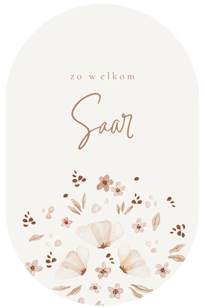 Een uniek geboortekaartje voor jullie dochtertje. Dit kaartje heeft een ovale vorm en maakt het kaartje echt speciaal. Op het kaartje zie je prachtige romantische bloemen in verschillende zachte pastel tinten. Pas het kaartje naar wens aan in onze online editor.